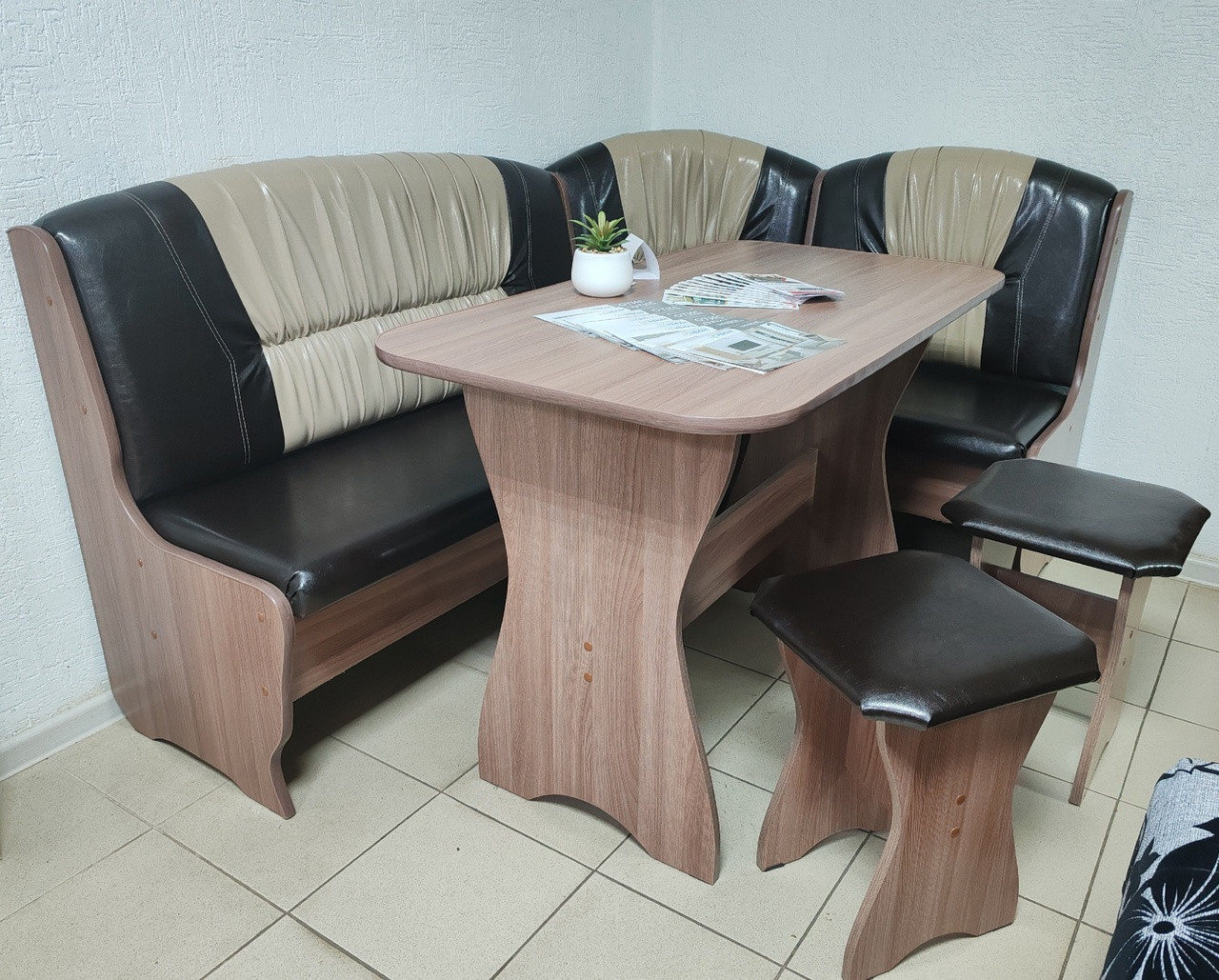 Стоимость указана за полный комплект (скамья угловая, стол обеденный и две банкетки). Все элементы можно приобретать по отдельности, например только угловую скамью.