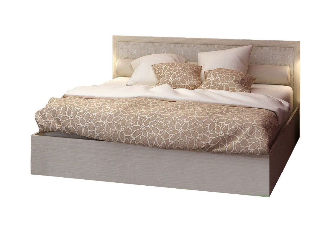 Двуспальная кровать КР401 из модульной коллекции мебели для спальни Барселона - это красивая модель в светлом декоре со вставкой из эко-кожи в изголовье.